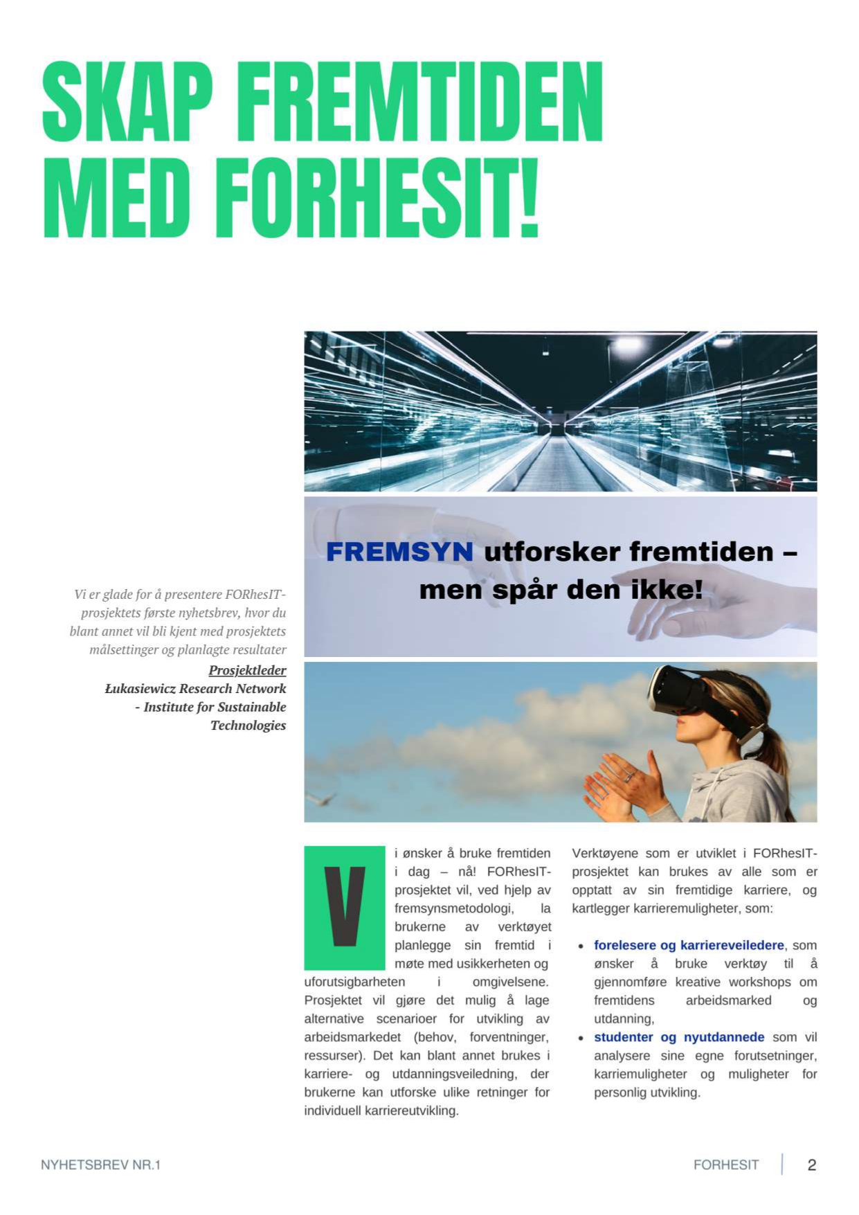 FORhesIT-prosjektets mål er å lage et IT-system som støtter høyere utdanning og karriereveiledning ved hjelp av fremsynsmetoder, som for eksempel tverrfaglige, deltakende planleggingsmetoder- og verktøy, rettet mot handling på mellomlang eller lang sikt. Idéen stammer fra behovet for å forbedre effektiviteten til karriereveiledningssystemet, samt behovet for å utvikle utdanningstilbudet på universitets- og høyskolenivå.