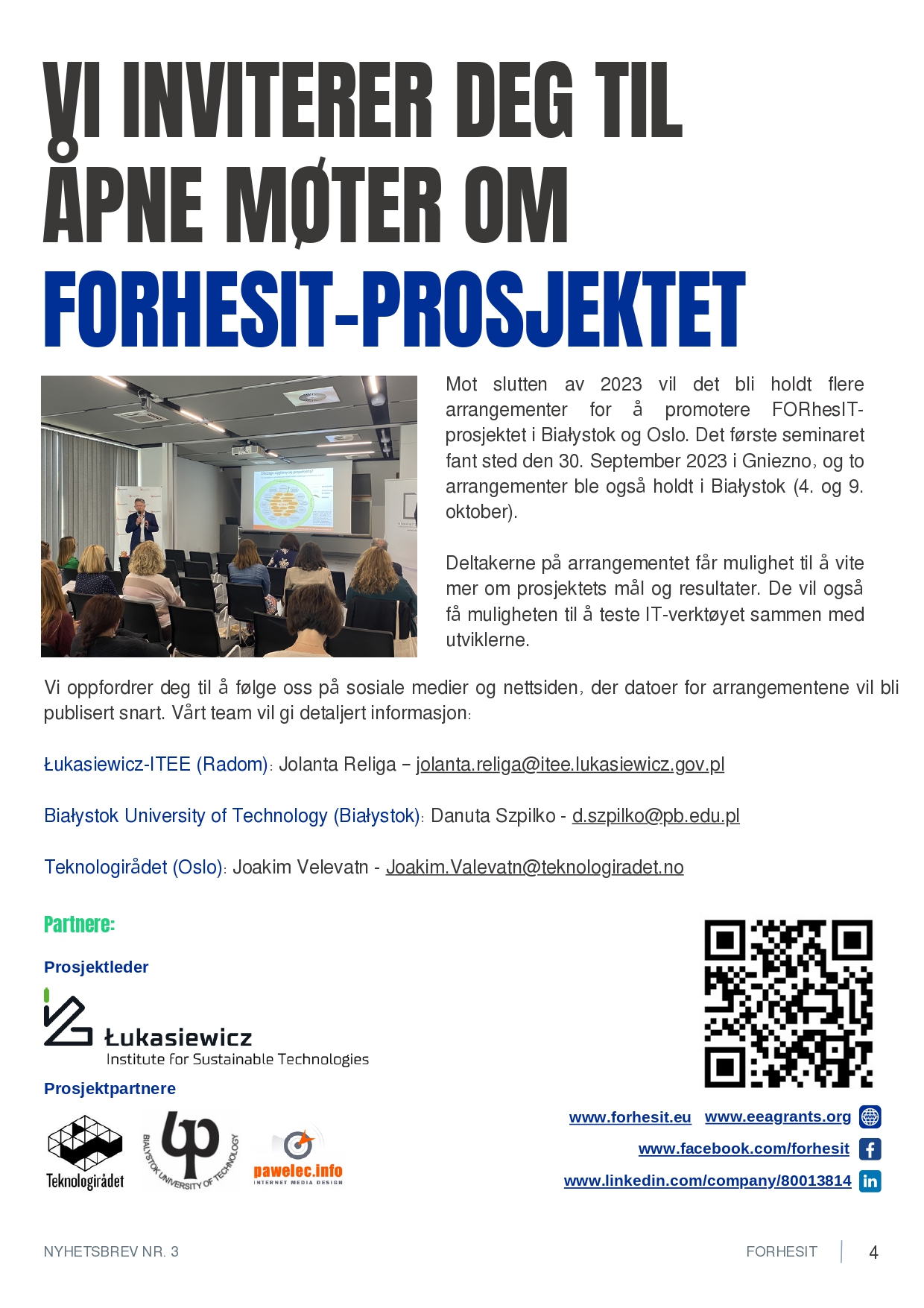 Projekt „System IT wspierający szkolnictwo wyższe i rozwój kariery z wykorzystaniem metodyki foresight (FORhesIT)” korzysta z dofinansowania o wartości 148.620,00 EUR otrzymanego w 85% od Islandii, Lichtensteinu i Norwegii w ramach Funduszy EOG oraz w 15% z budżetu państwa (nr projektu: EOG/21/K4/W/0118).